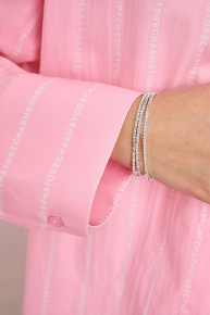 Изящный браслет нитью из страз круглой огранки в несколько рядов. Легкое изделие, комфортная посадка на запястье. Необходима бережная носка, чтобы избежать повреждений звеньев.