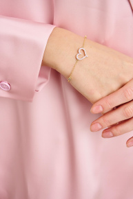 Браслет с сердечками со стразами. Модель выполнена на тонкой цепочке, которая не сковывает запястье. Браслет застегивается на карабин. Изящная модель из страз круглой огранки.