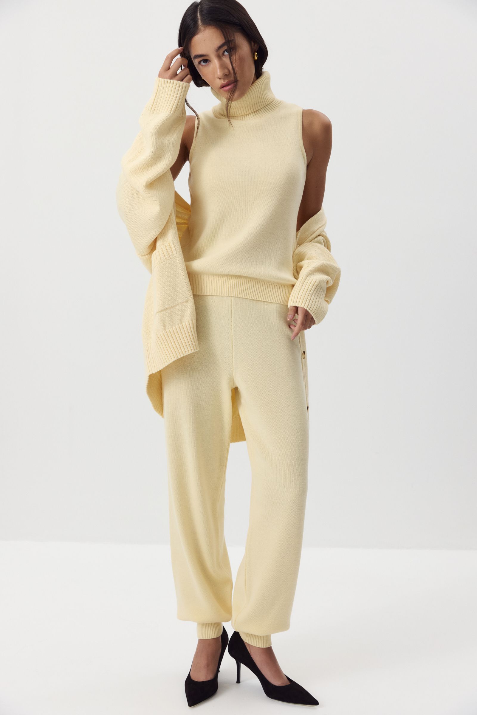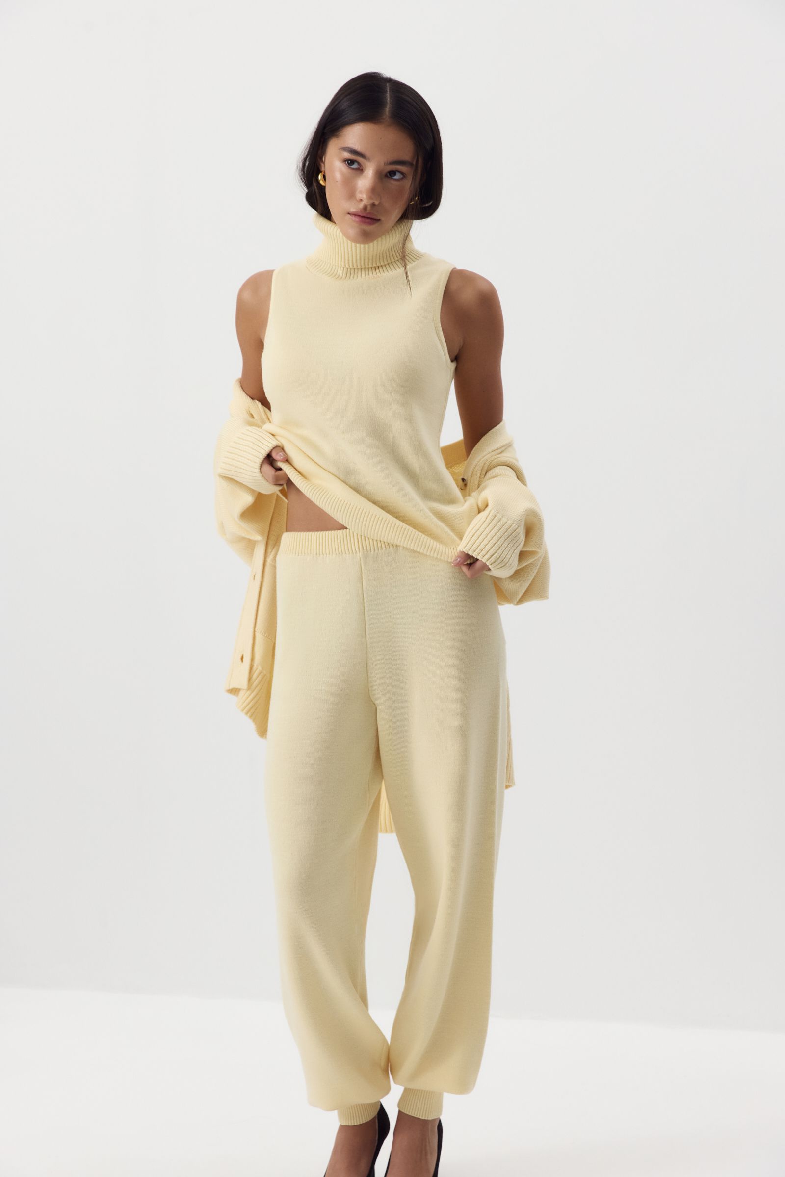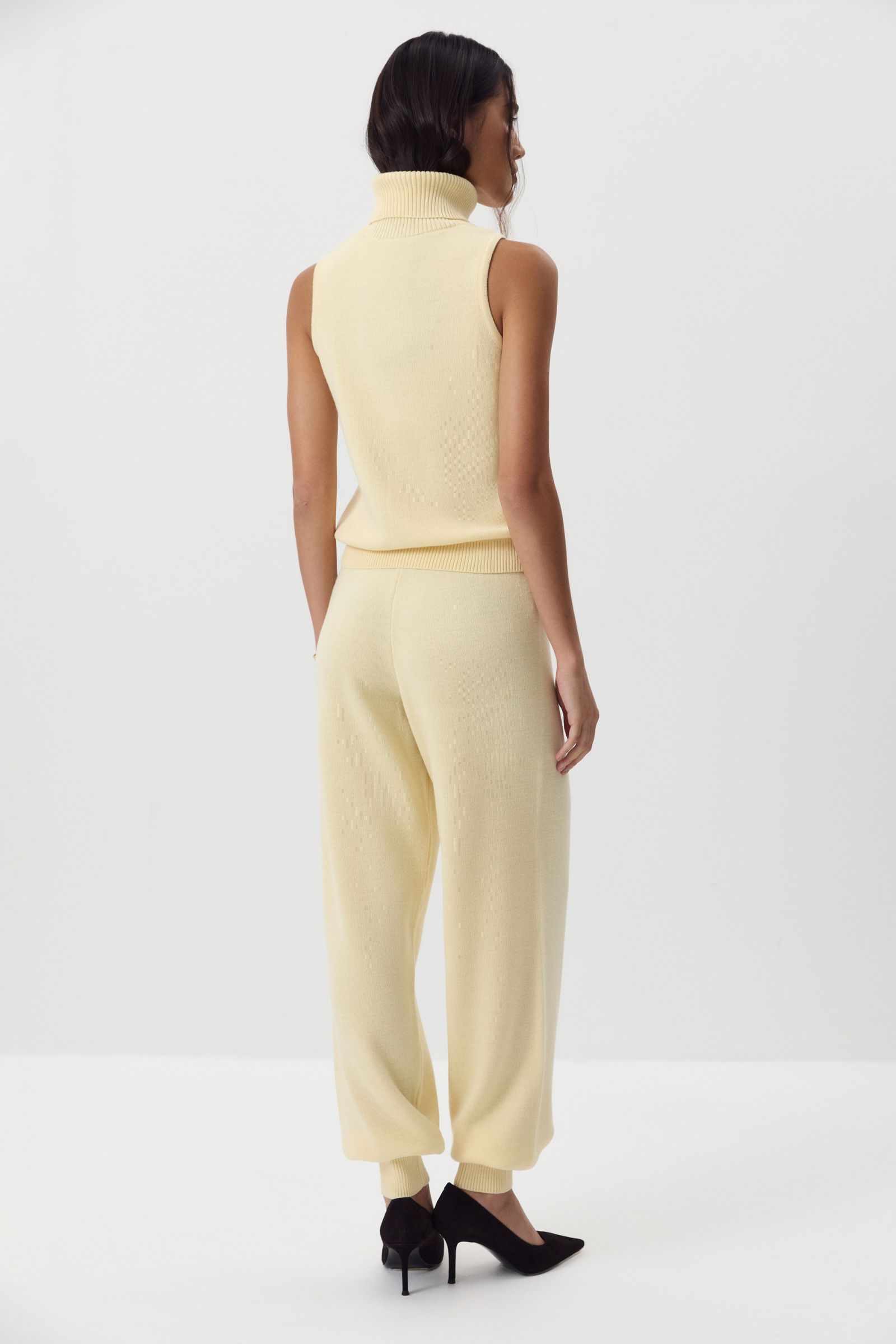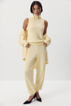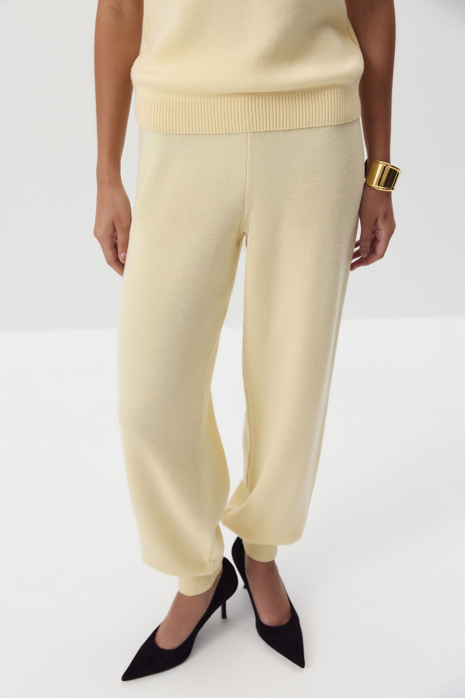 Эти теплые джоггеры созданы для максимального комфорта — мы сделали их свободными, с эластичным поясом и манжетами. Благодаря пряже с шерстью мериноса в составе джоггеры особенно приятно носить в холодный сезон, а универсальный силуэт позволяет легко комбинировать их с другими вещами. Сочетать с топом и кардиганом из нашей коллекции.