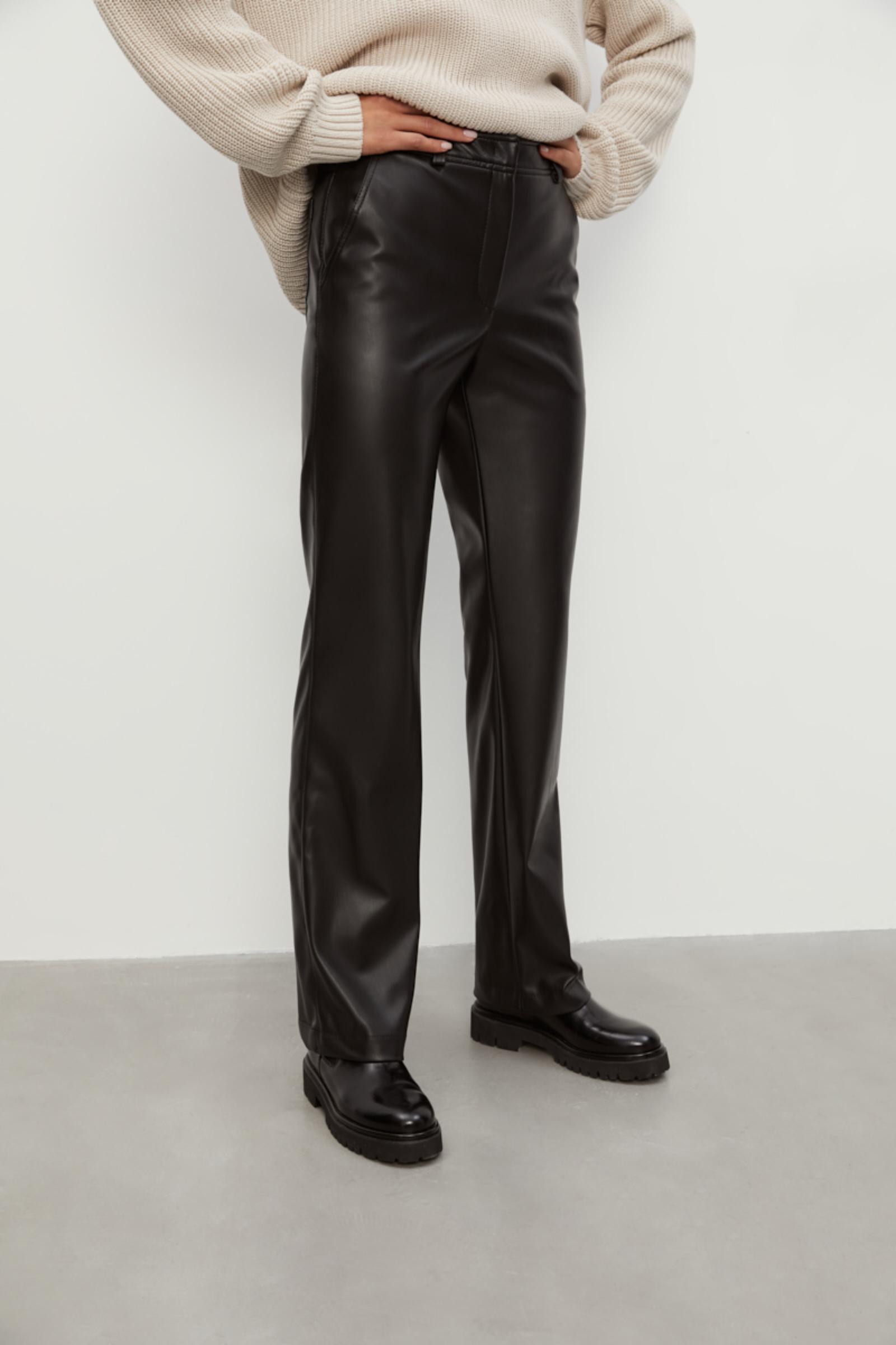Добавьте брюки из экокожи в свой дневной и вечерний гардероб. Днем носите с жакетами, водолазкой с горлом и с джемпером, выбирая спокойные, нейтральные оттенки. Для праздничных поводов стилизуйте с атласным топом и нарядными блузами. Если вы любительница более спокойных и расслабленных аутфитов, то носите брюки с теплыми рубашками, кардиганами и жилетами.