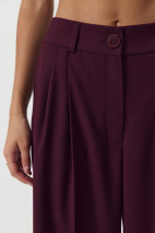 Широкие брюки палаццо- это воплощение элегантности. Свободный силуэт струится при движении. визуально вытягивая силуэт и придавая образу утонченность. Защипы на поясе создают мягкий объем и подчеркивают талию, а лаконичный крой делает модель универсальной: такие брюки легко вписываются и в деловой стиль, и в расслабленные повседневные сочетания.