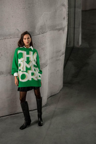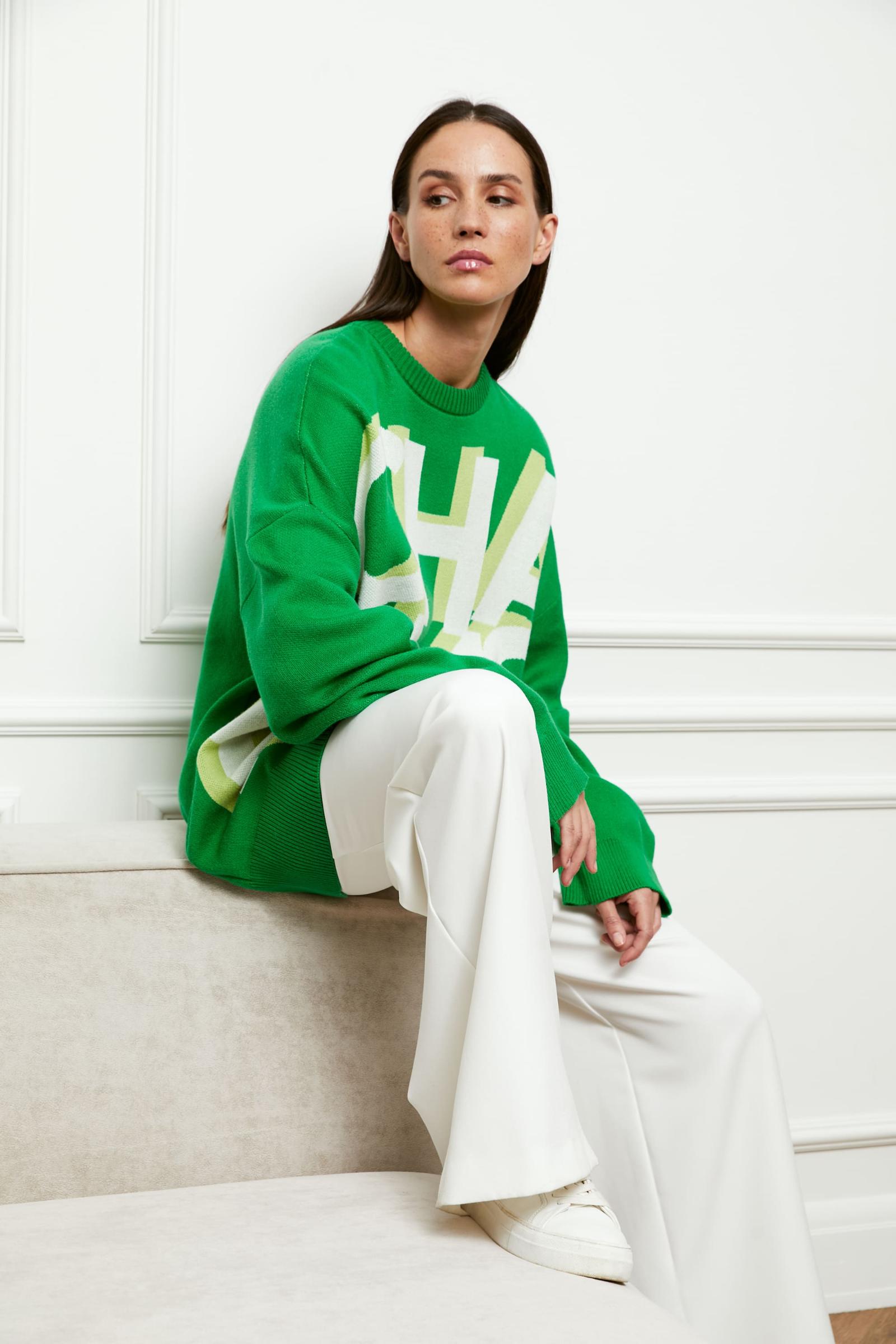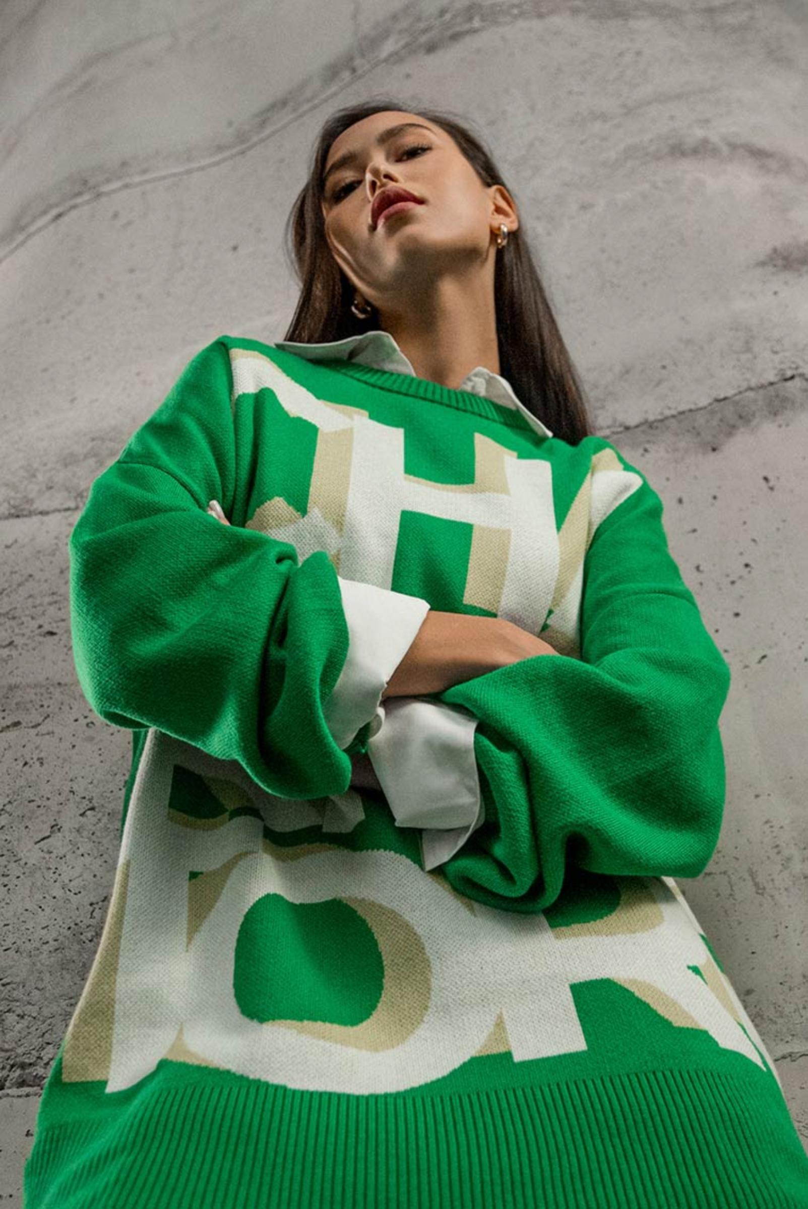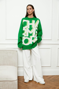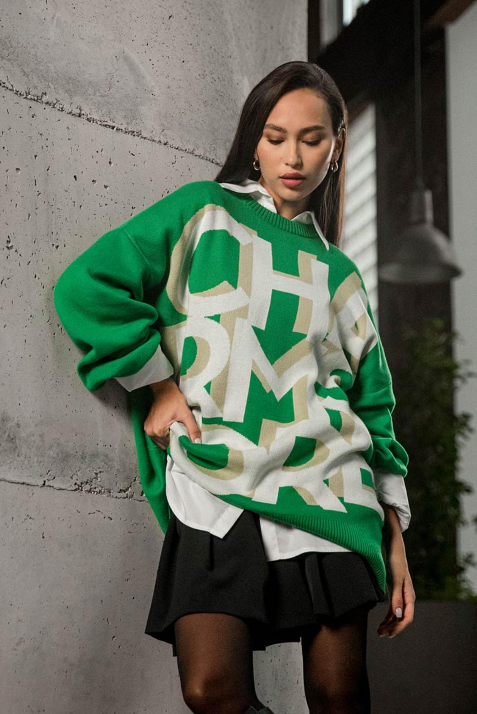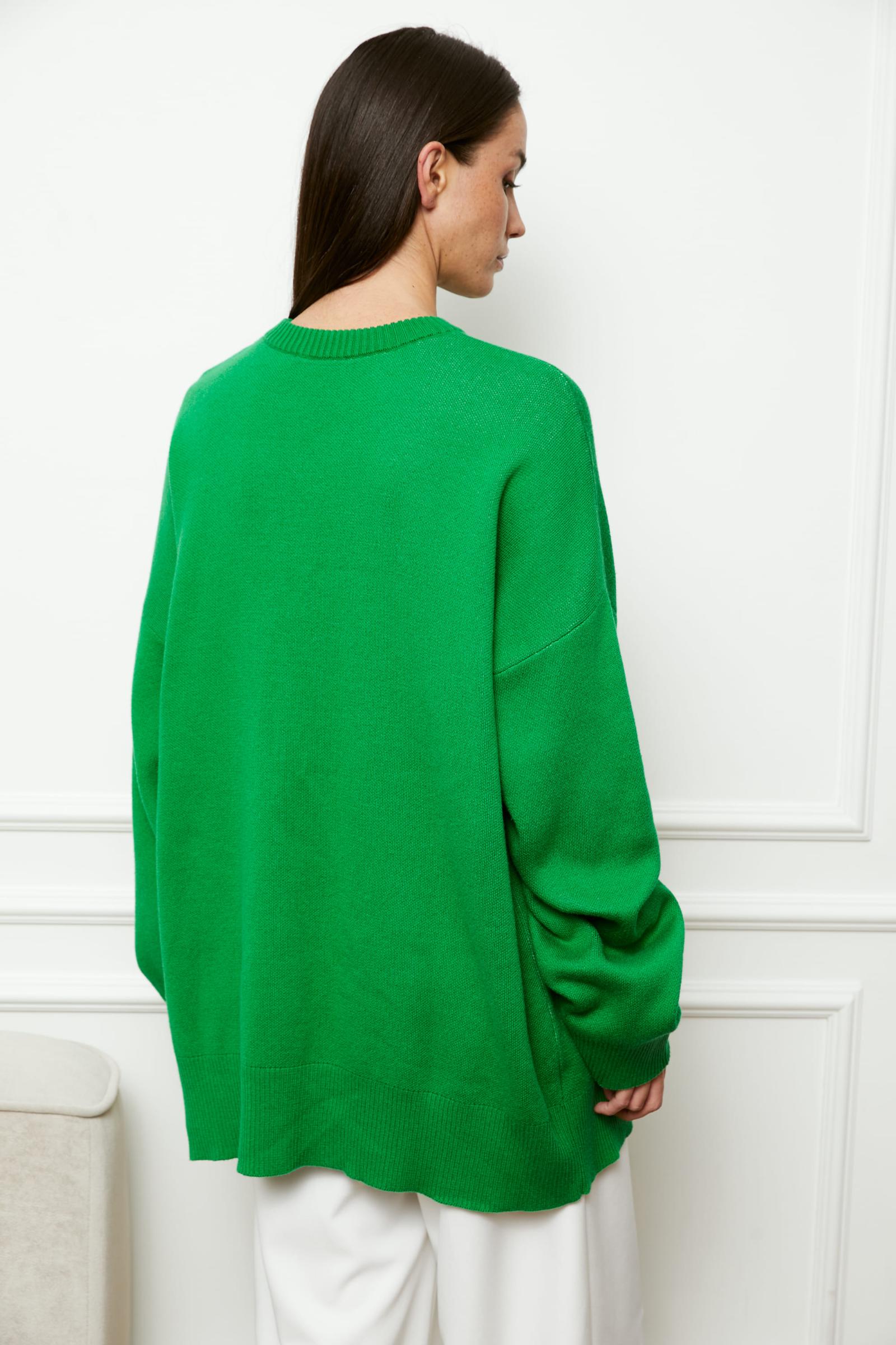 Такой джемпер хорошая основа для базовых повседневных выходов. Оверсайз крой и длина позволяют носить его с разнообразным низом. Брюки палаццо в офис или джинсы для повседневных встреч. Также вы можете использовать его в стилизациях, повязывая на плечи поверх пальто или куртки.