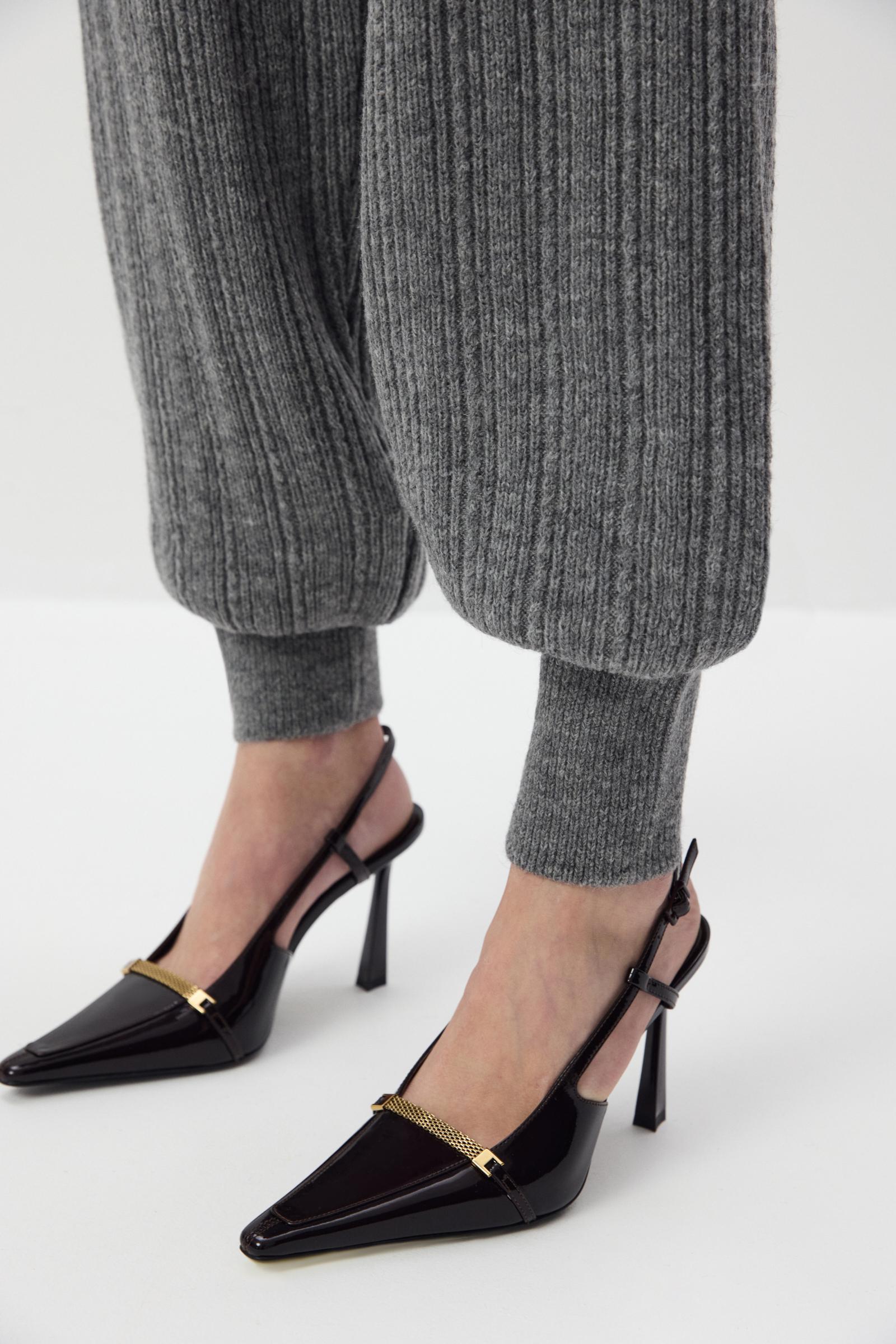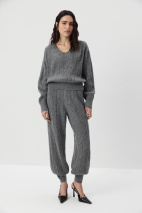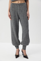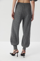 Вязаные джоггеры из нежной пряжи с шерстью альпака в составе с переплетением косами. Благодаря плотному переплетению тонкой пушистой нити брюки отлично удерживают тепло и дольше служат, а эластичный пояс и мягкие манжеты позволяют полностью расслабиться.