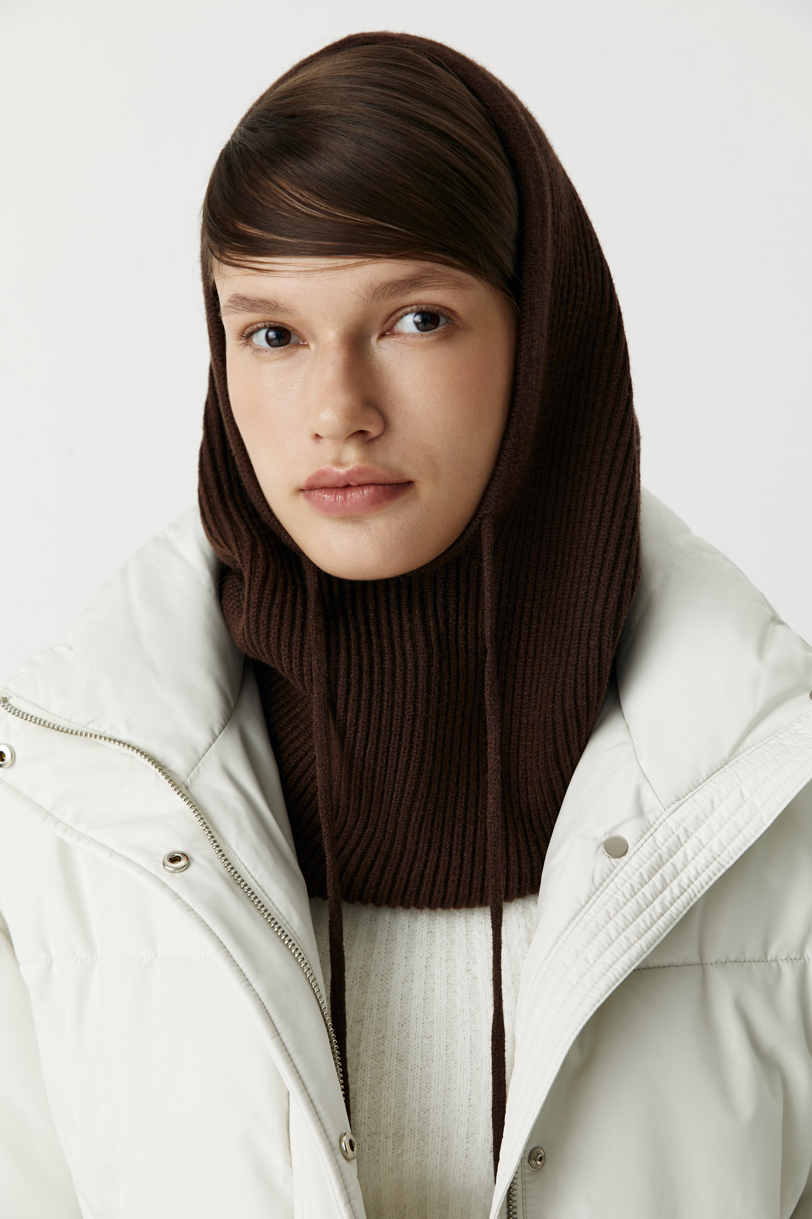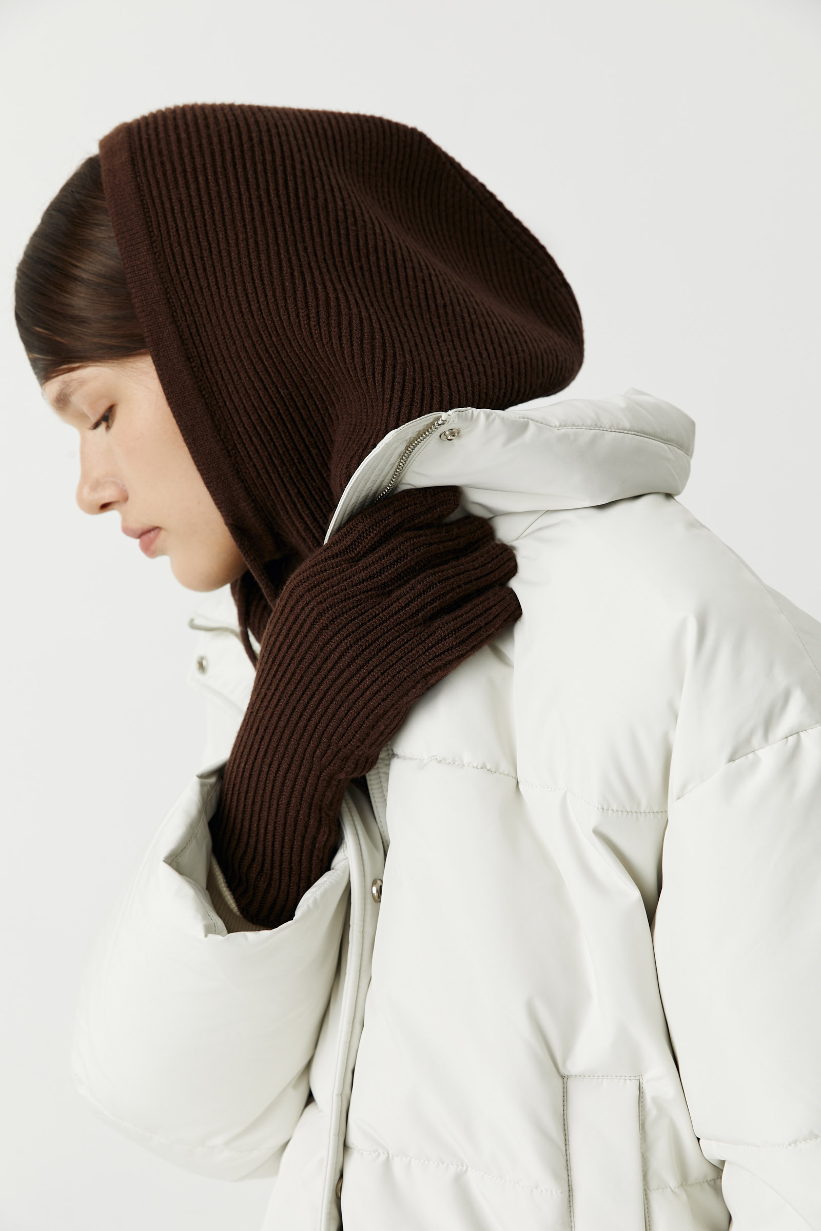Капор станет отличным дополнением как к пальто, так и пуховиках. Сочетайте с перчатками в тон.