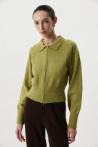 Кардиган на молнии из пряжи с шерстью альпаки в составе. Укороченная длина, рукав реглан с акцентными сбавками по пройме, отложной воротник. По низу изделия и рукавам широкий риб, что формирует силуэт и добавляет акценты. Застежка на двустороннюю молнию, что позволяет регулировать посадку и создавать различные образы. Косынка в комплекте.