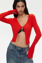 Вязаный кардиган из вискозной пряжи на одну пуговицу с декоративными разрезами на рукавах. Изделие выполнено из итальянской вискозы премиального качества, которая отлично держит форму, не вытягивается и не деформируется. Модель для самых дерзких и сексуальных девчонок, которые не боятся пробовать новое и следуют самым смелым современным трендам.