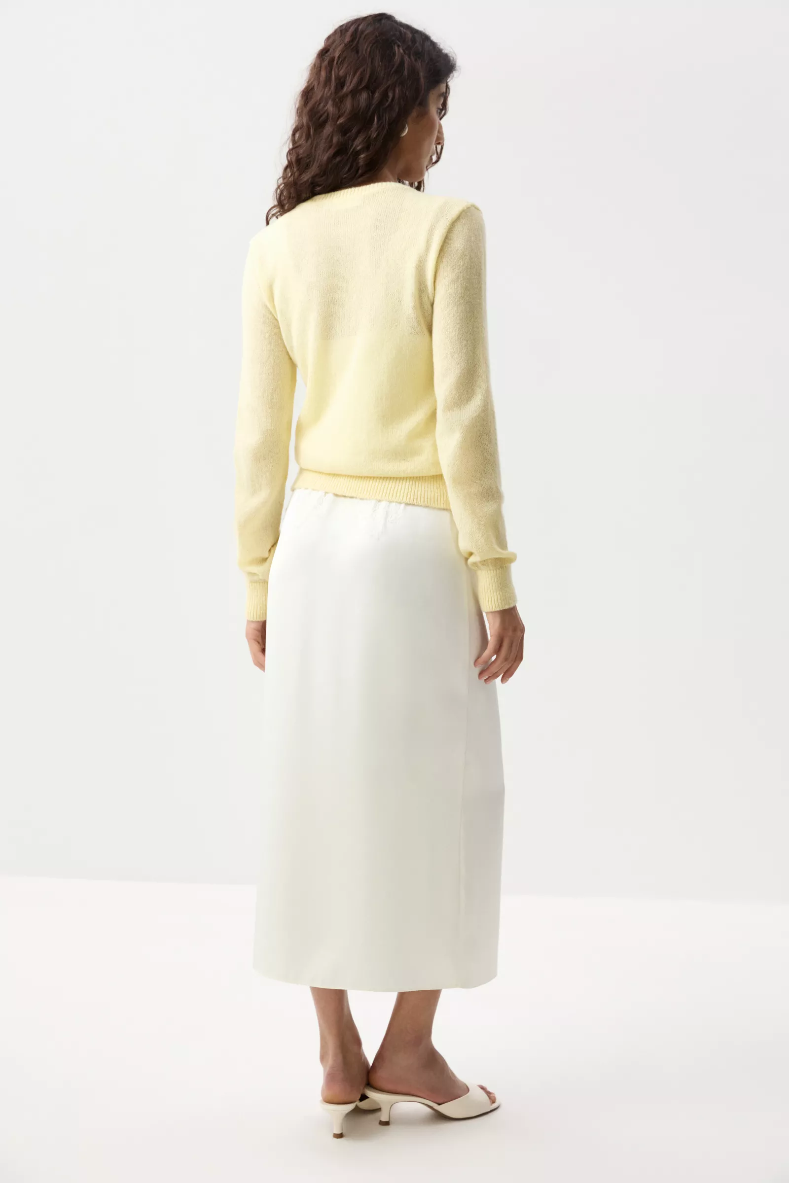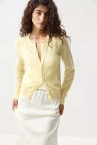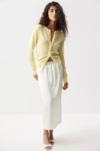 Самый легкий вариант стайлинга – носить кардиган поверх майки с брюками палаццо. Для более интересных образов добавьте кофту с длинным рукавом, юбку из сатина длины миди или мини юбку базовых оттенков.