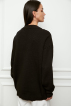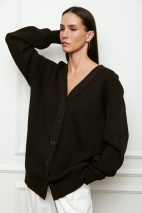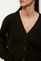 Кардиган оверсайз с длинным рукавом c V-образным вырезом. Модель застегивается на 5 брендированных пуговиц тон в тон. Благодаря спущенной линии плеч и свободному силуэту изделие комфортно в носке. Вы можете самостоятельно отрегулировать глубину выреза с помощью пуговиц. Придерживайтесь деликатного ухода.