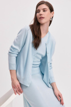 Самый легкий вариант стайлинга – носить кардиган поверх майки с брюками палаццо. Для более интересных образов добавьте кофту с длинным рукавом, юбку из сатина длины миди или мини юбку базовых оттенков. Дополняйте образы обовью на невысоком каблуке, а с похолоданием присмотритесь к высоким сапогам или ботинкам.