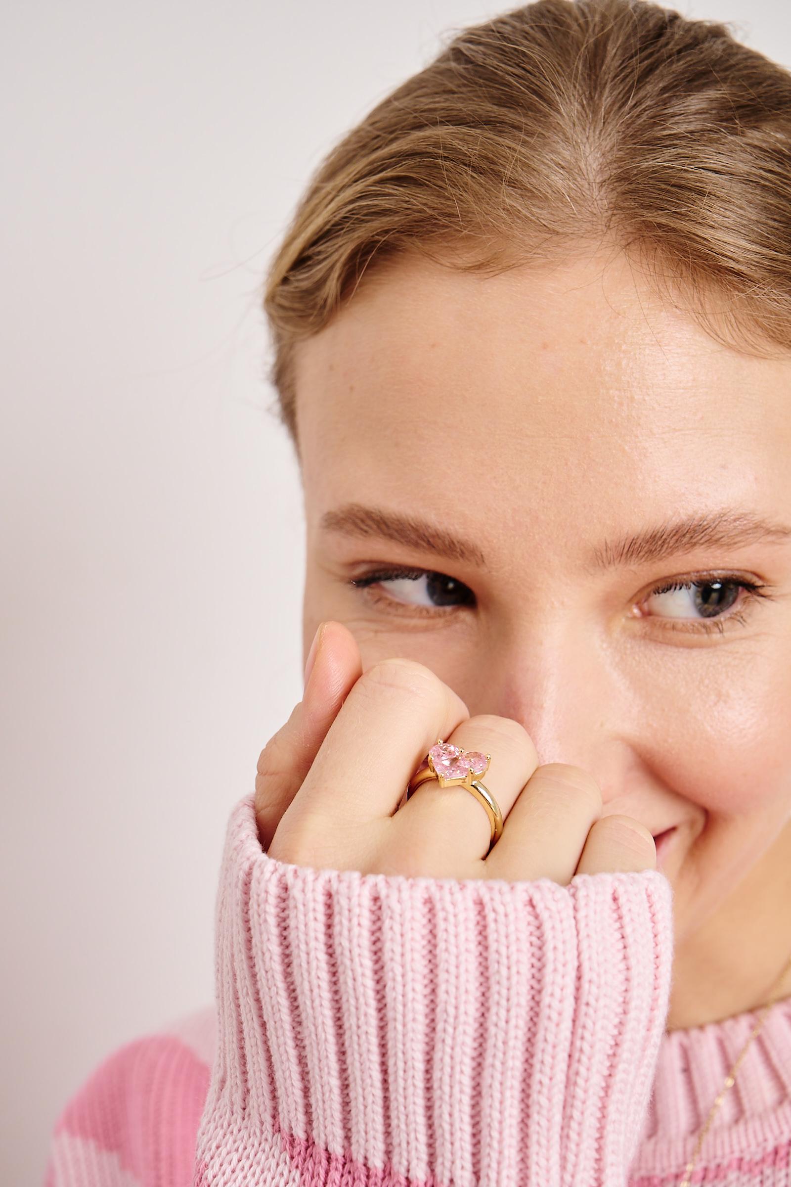 Кольцо с камнем в виде сердца одна из самых трендовых моделей среди аксессуаров. Несмотря на большой камень, модель выглядит очень лаконично.