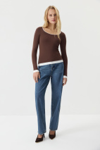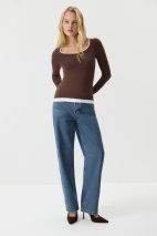 Носите как отдельный предмет гардероба с брюками в офис и джинсами в повседневных выходах. Выбирайте лонгслив первым слоем под жакеты и кардиган.