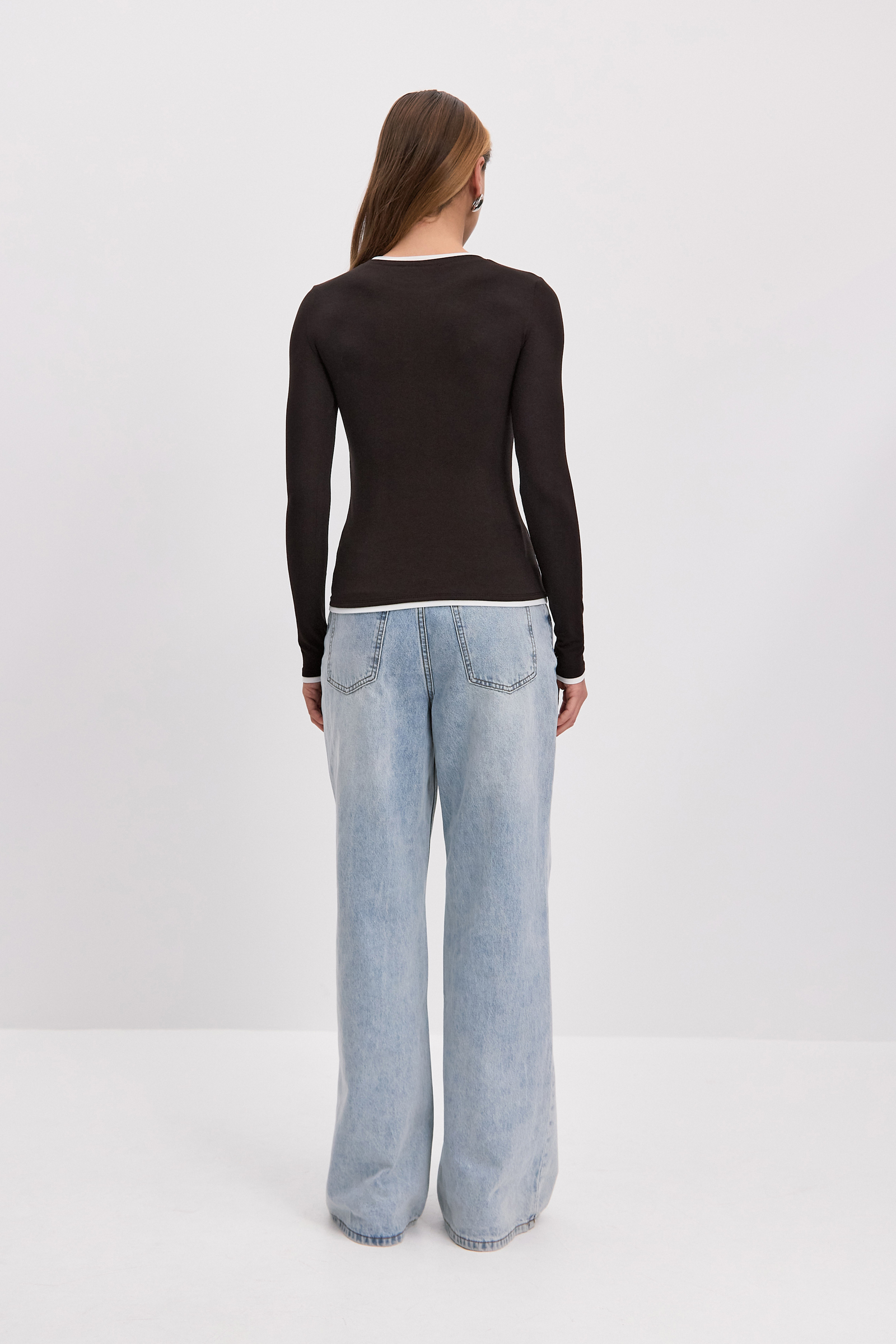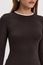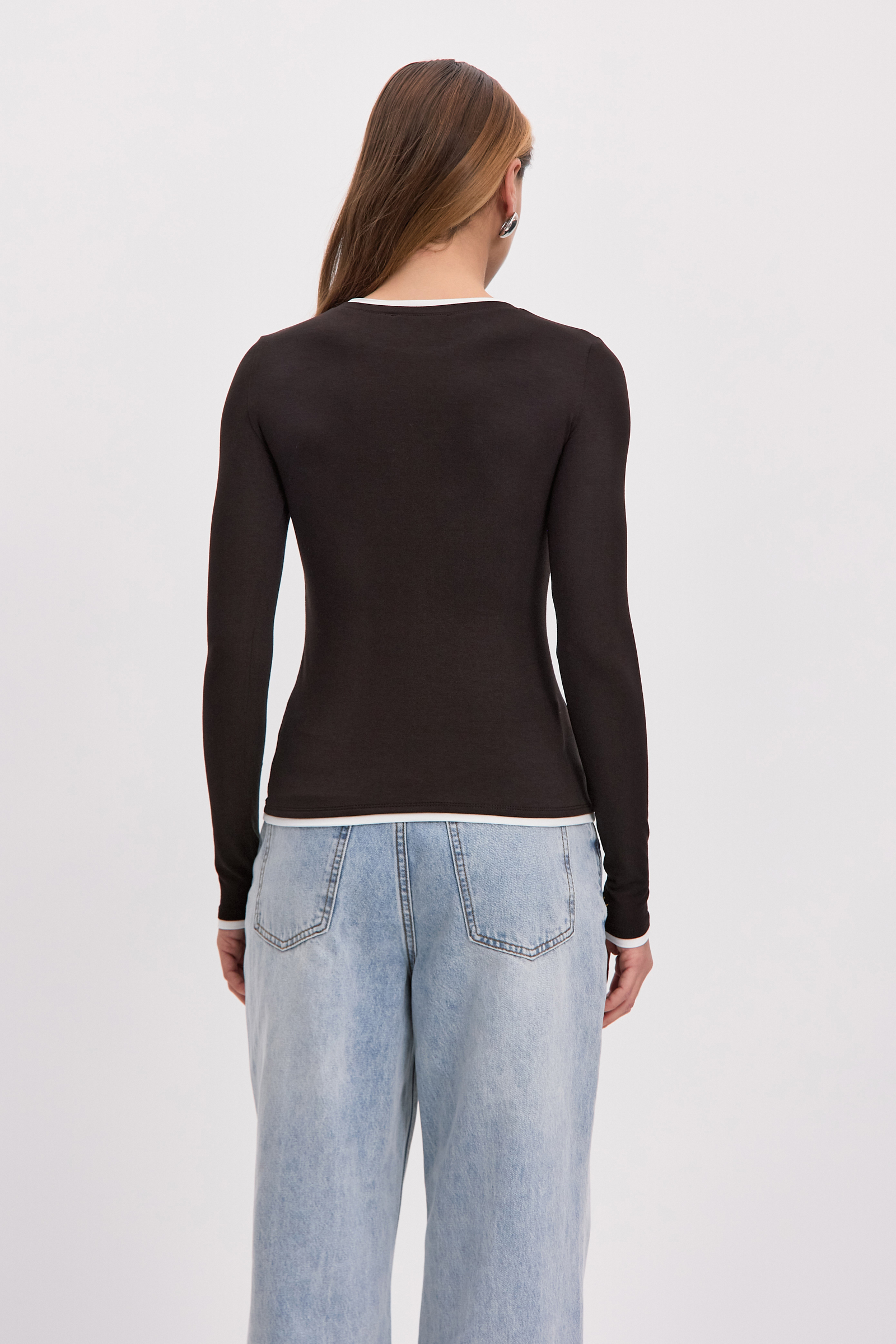 Базовый лонгслив из вискозы с длинным рукавом. Модель выполнена в облегающем силуэте и садится точно по фигуре. Акцентный образ придают контрастные детали имитирующие многослойность. Обработанная круглая горловина для большего удобства и комфортной носки. Изделие разработано из приятной к телу вискозной трикотажной ткани.