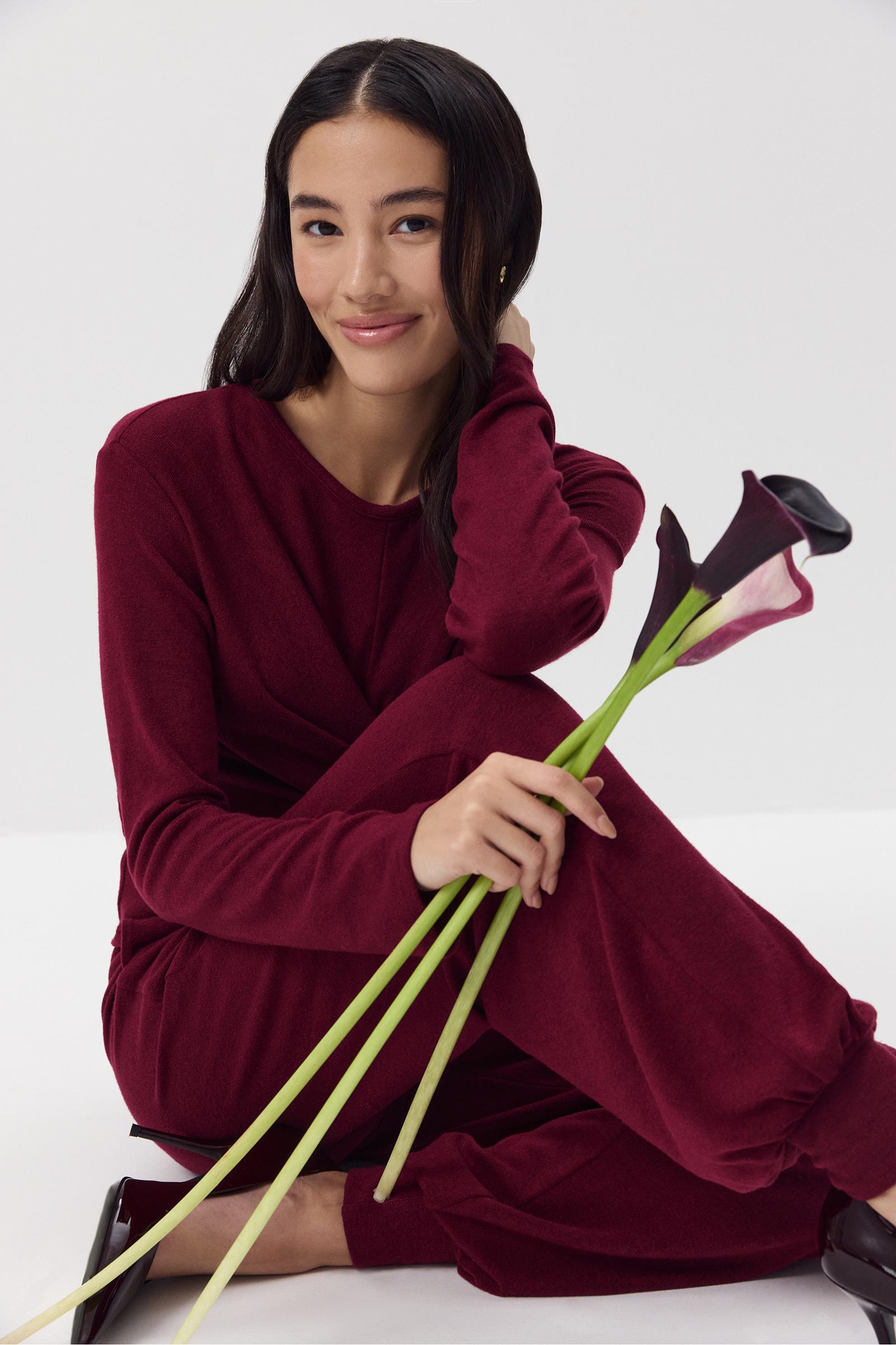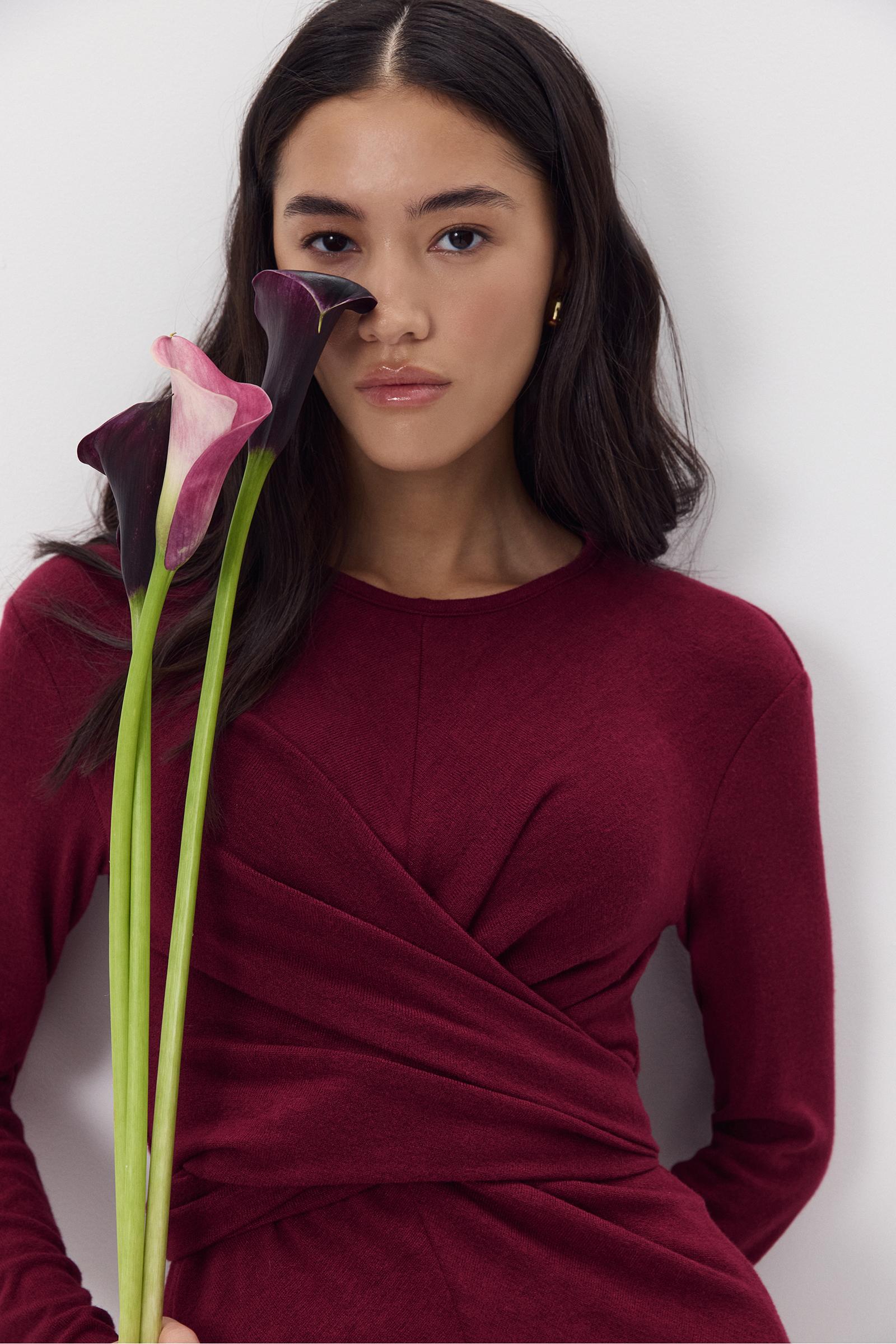 Такой лонгслив станет акцентом в базовом образе. Носите комплектом с джоггерами из аналогичной ткани. Или стилизуйте в повседневных выходах с юбками, сохраняя сдержанный минималистичный стиль.
