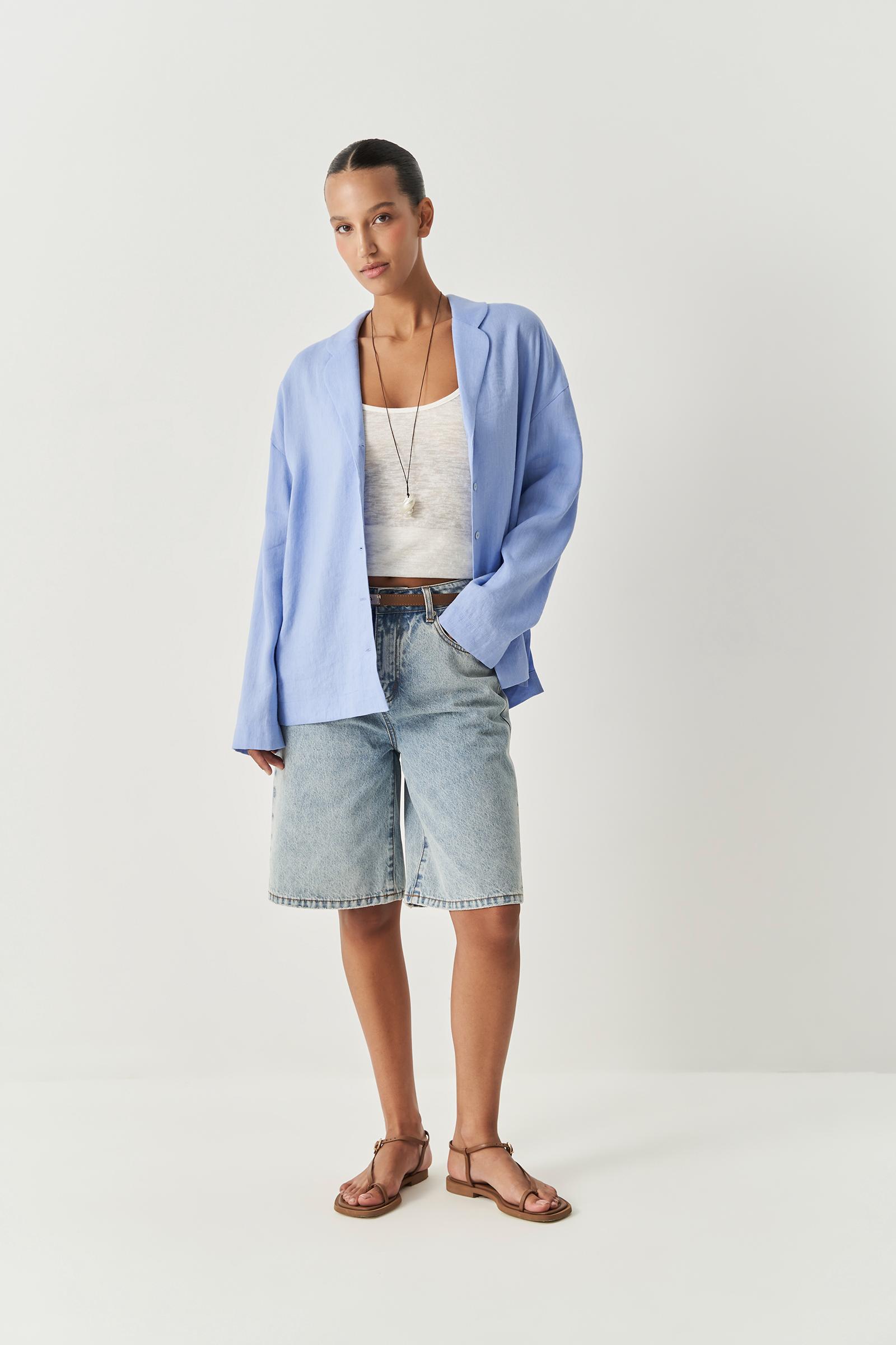 Легкая оверсайз рубашка комфортная и выразительная модель летнего сезона. Комплектуйте с шортами и брюками из идентичной ткани. Изделие заменит вам жакет на все лето и станет. Несмотря на оверсайз силуэт, рубашка очень нежно дополняет выходы с вечерними платьями и юбками. Также это уместный вариант для офисных встреч, если добавить классические прямые брюки или брюки палаццо.