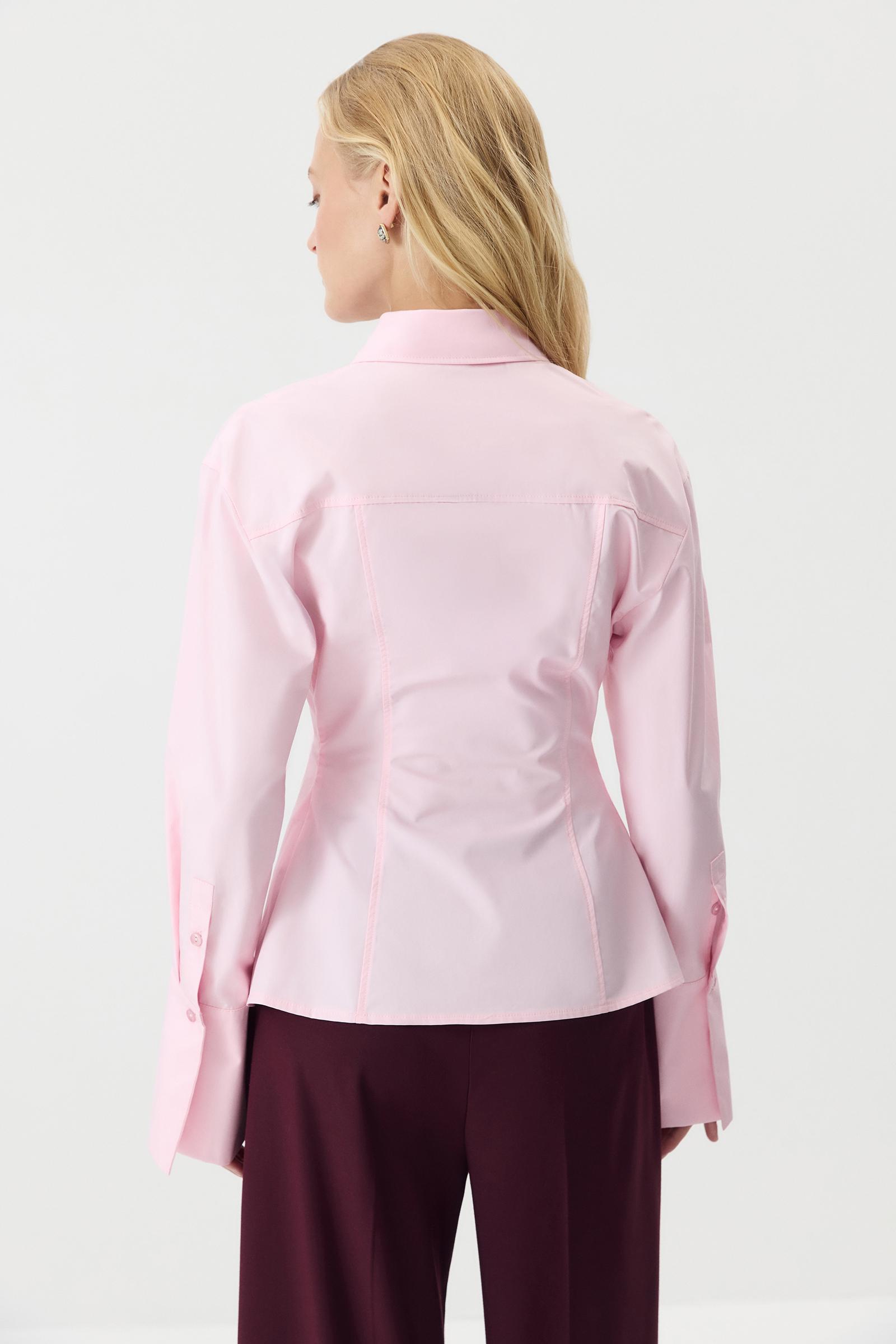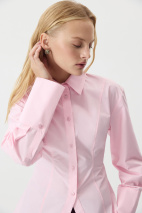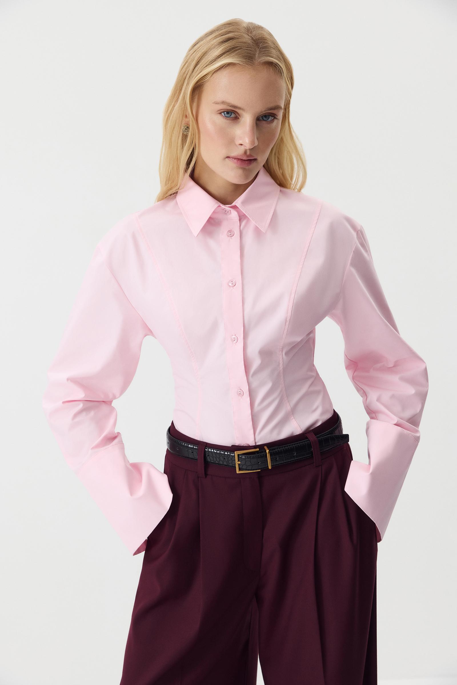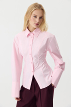 Приталенный рубашка из плотного хрустящего хлопка в самых модных оттенках. Рубашка с аккуратным воротником до уровня бедер. По переду и спинке вертикальные формообразующие рельефы, которые формируют силуэт песочные часы. Рубашка сконструирована так, чтобы подчеркнуть ваши талию и изгибы, но при этом не сковывать движения. Пропорции изделия, высота манжетов, форма воротника и фигурная планка выверены и работают на то, чтобы обрамлять вашу хрупкость. Застежка на планку и пуговицы.