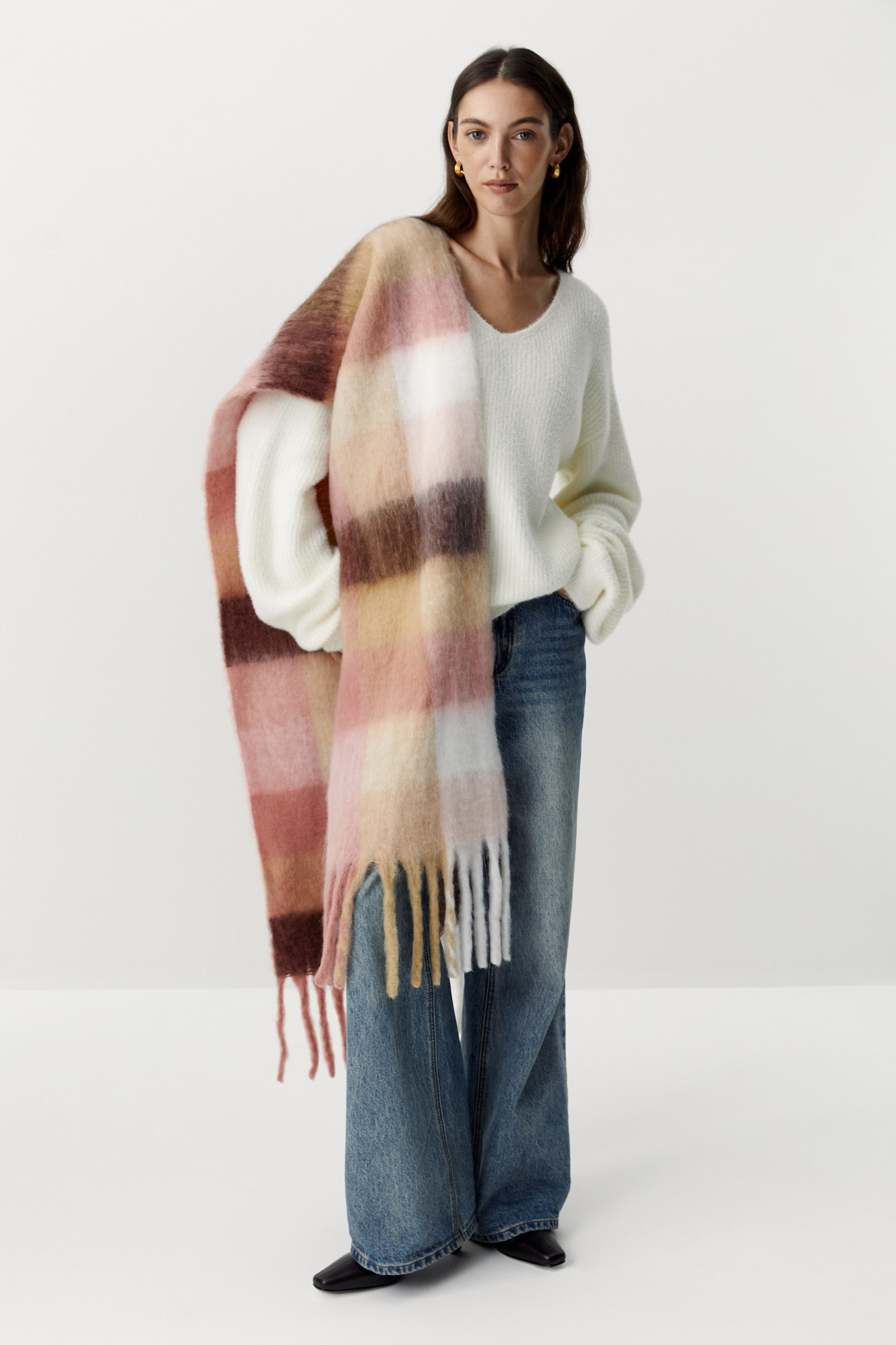 Этот шарф - воплощение уюта и стиля. Изготовлен из мягкого и приятного на ощупь полиэстра, который приятно согревает в холодную погоду. Классическая клетка - вневременной тренд, который идеально сочетается с любым стилем одежды.