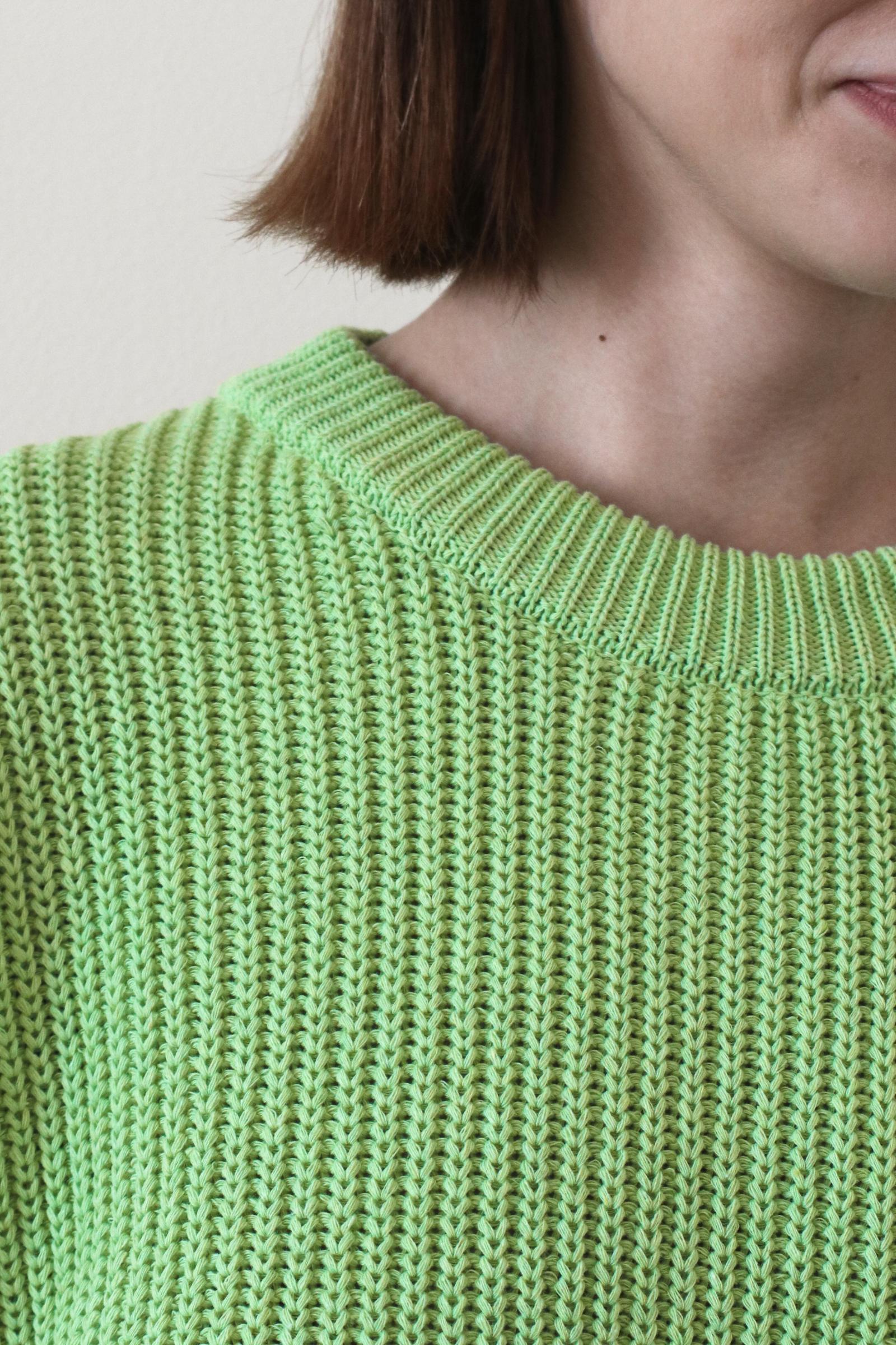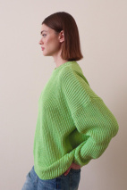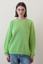 Свободный крой, лавандовый оттенок и лаконичный круглый вырез. Благодаря своему составу, свитер можно надевать даже летним вечером.