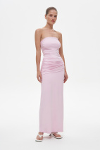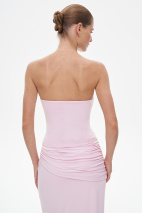 Удлиненный топ-бандо. Slim fit силуэт с драпировкой по бокам. Изделие садится точно по фигуре, нежно облегая силуэт и аккуратно подчеркивая линию талии. Модель выполнена двухслойной из эластичного трикотажа, который не мнется, хорошо тянется и долго сохраняет внешний вид. Избегайте соприкосновения с сумками и аксессуарами.