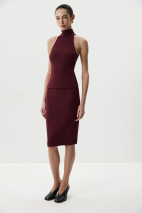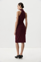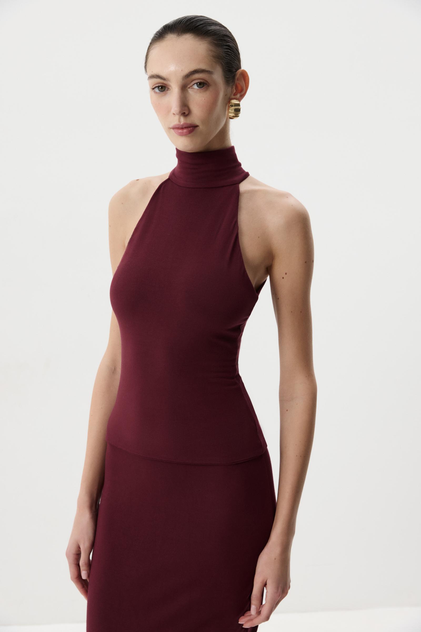 Топ из мягкой трикотажной вскозы. Длина до линии бедер, воротник стойка. Топ с фигурной проймой подчеркнет ваши изящные плечи. По спинке изделие застегивается на потайную молнию, что обеспечива комфортную посадку.
