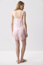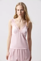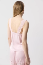 Сатиновый топ с кружевными деталями - чувственная база с акцентом на изящность. Мягкий сатин красиво ложится по фигуре. Чашки формируют аккуратный силуэт, а кружево по горловине подчеркивает линию декольте. Тонкая резинка по верхней линии спинки обеспечивает комфортную посадку.