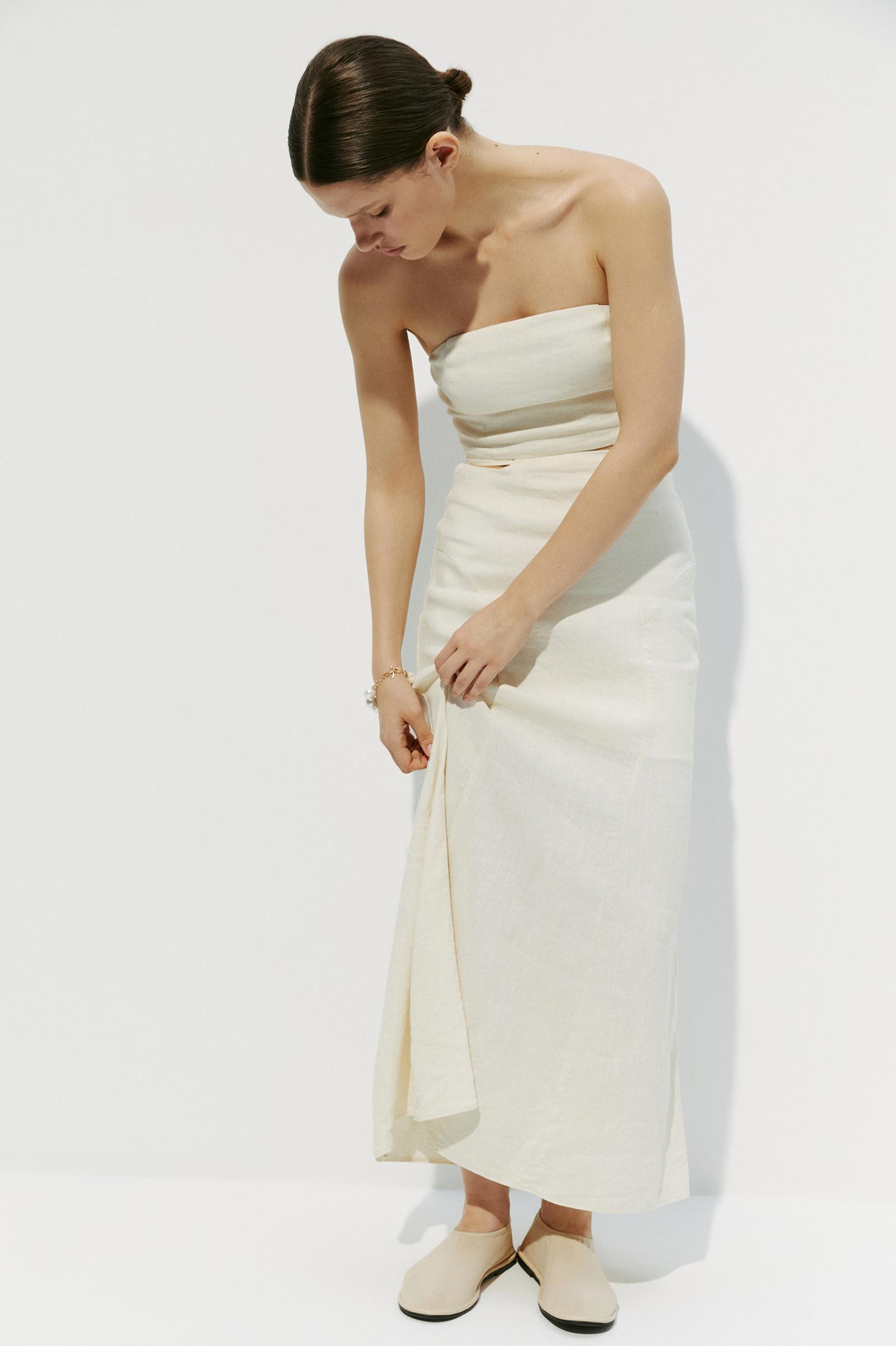 Юбка годе в длине макси. Особенность юбки облегающий силуэт с акцентом по бедрам. Для комфорта при носке мы выполнили изделие с подкладом и с расклешенным к низу силуэтом, который не ограничивает в движении. При ходьбе мягкий вискозный лен аккуратно струится. Декоративный тонкий пояс можно обернуть вокруг талии, тем самым подчеркнув её.