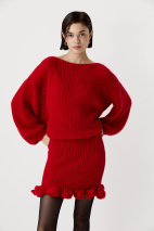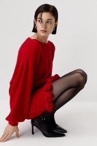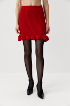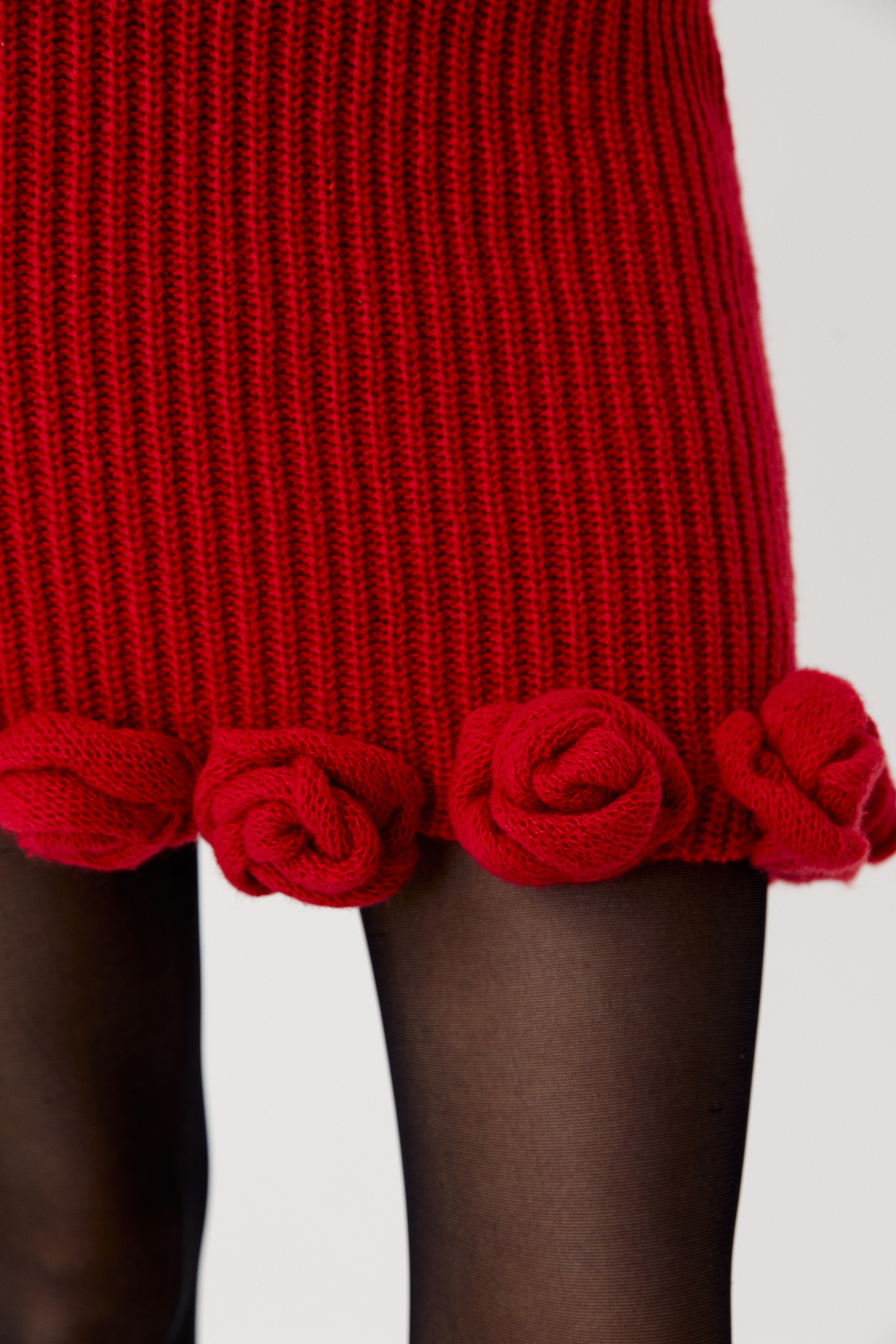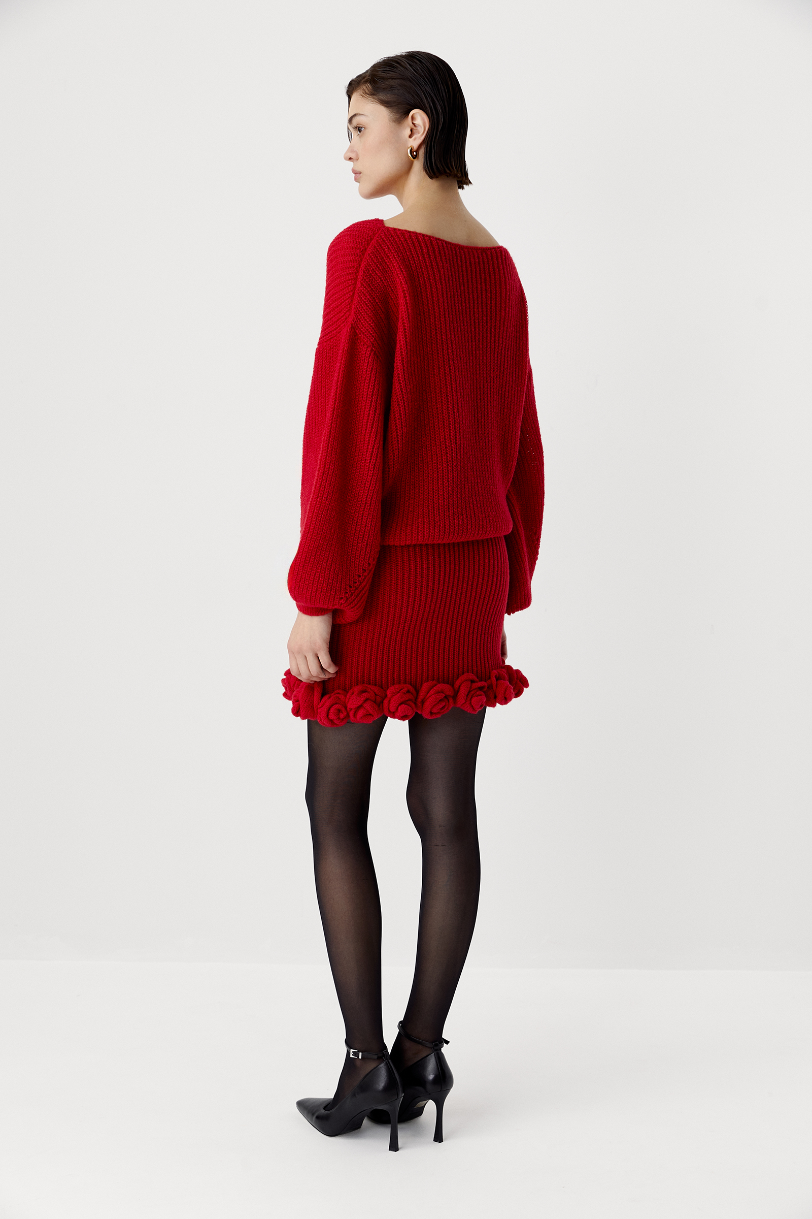 Вязаная юбка мини с высокой посадкой - самая романтичная модель наших коллекций. Юбка выполнена в облегающем силуэте и аккуратно подчеркивает линии талии и бедер. Лаконичный силуэт и крупная вязка дополнены нежными вязаными розами, усыпанными по низу изделия.