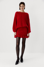 Носите юбку сетом с джемпером в тон из аналогичной вязки или для более акцентного выхода с кардиганом с розами. Составляйте более классические луки, выбирая базовый сдержанный верх, оставляя юбку яркой деталью.
