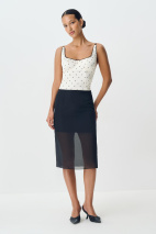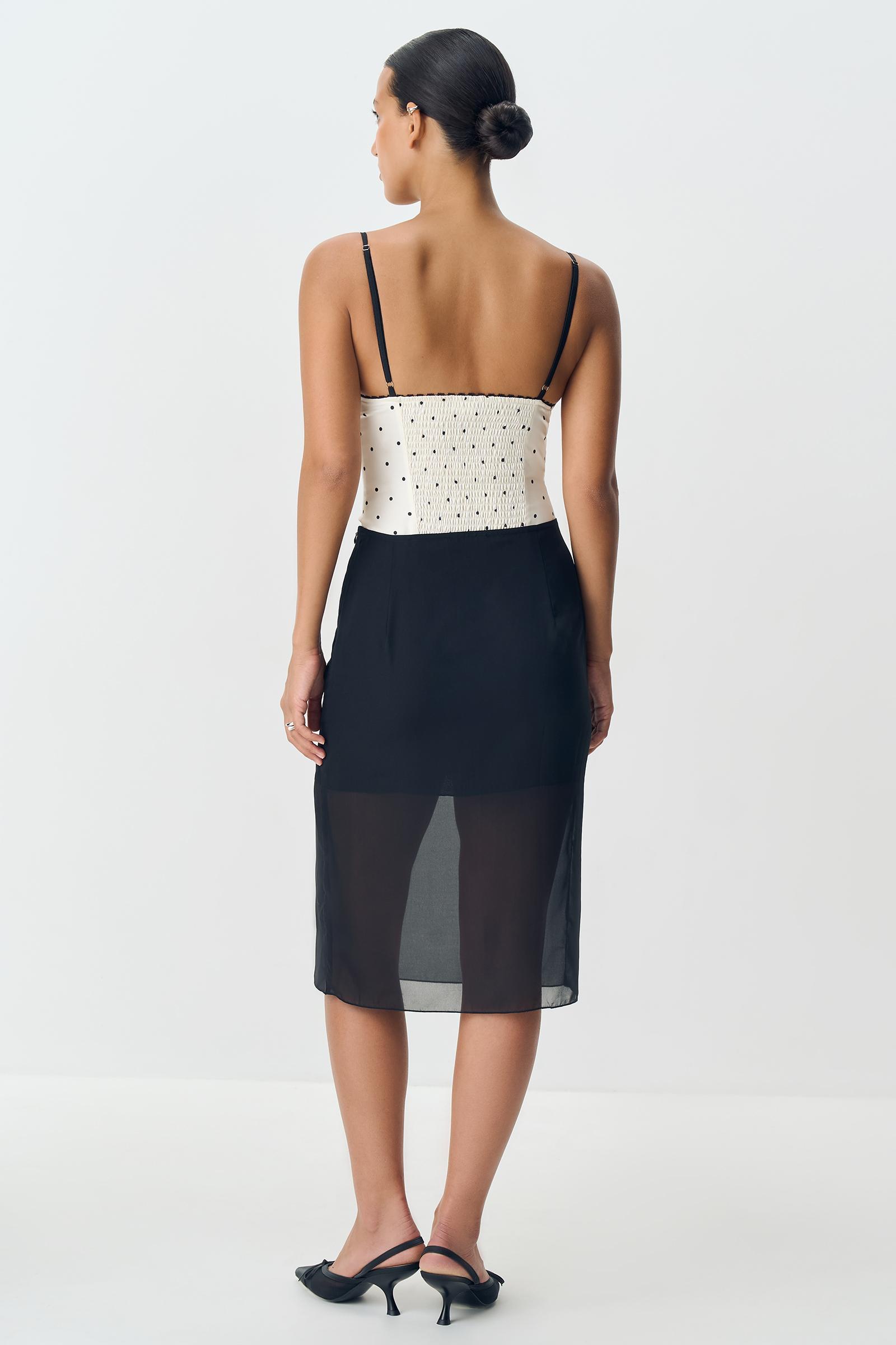 Сочетайте легкие фактуры с более теплыми, создавая контраст. Стилизуйте с трикотажными кардиганами для повседневных встреч и дополняйте юбку облегающими лонгсливами на вечер.